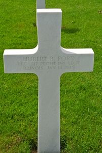 Pfc Hubert B. Ford graduated from Tuscola Community High School.Per Allan Goodman: Our platoon was moving on to clear a building 50 to 60 yards up the road when we encountered enemy rifle fire. The building turned out to be their last defense and they had some of their riflemen, with snow uniforms, laying out in the fields behind cows that had been shot but were still breathing, so you couldn’t pick up the breathing of the German riflemen.