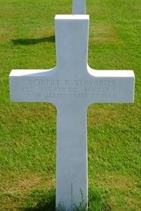 Statement of 2nd Lt Arthur B. McCormick, who flew in the same mission: "White flight (3 ships) had left the bombers around 1330, and started down for the deck looking for target of opportunity. We spotted a train in the vicinity of Leun, northwest of Frankfurt. The train was in a valley, hills on either side, heavily wooded. The train was standing on the track, which lay approximately on the southwest side of the valley, right next to a hill. We got in trail formation, and made a pass from northeast side of the valley. Haze in the valley was moderate, but enough to restrict normal vision. As I came in on my pass, I lost sight of Lt Edwards temporarily, because of the haze and sun. I decided not to fire, fearing I might hit Lt Edwards. There were high tension wires lying parallel to the track. I pulled up sharply as soon as I saw them. As I started over them, I observed a large explosion, followed by bellowing smoke and flames. On the side of the hill adjacent to the track, passing over trees, I saw several pieces of silver metal next to the fire. I peeled up, and made one more pass, firing this time on the train. I observed the wreckage of Lt Edwards plane, still burning. We then climbed up, and set course for home."Source of information: Terry Hirsch, Raf Dyckmans, www.wwiimemorial.com, www.findagrave.com, www.fold3.com