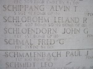 John G. Schloendorn joined the Air Corps of the U.S. Army Reserve in Nashville, Tennessee on 19 May 1943.The airplane was hit by flak just after bombs away, causing a fire in engine #3 and the right wing. The pilot made a diving maneuver to try to put out the flames.
