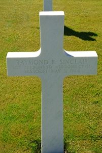 "Raymond didn't bail out, he apparently was killed by flak or fighters. He was last seen in the ball turret and went down with the plane. He was initially buried at Costesti, Rumania, in an unmarked grave, since they were not positive which member of the crew he was."