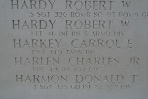 Pvt Carrol Harkey was killed in action when a shell hit his tank. His body was never recovered.Source of information: Astrid van Erp, Raf Dyckmans, www.wwiimemorial.com, www.ancestry.com,