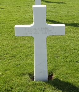 George was born at the family ranch on Cannon Road, San Benito County in California. He was the youngest of the Erbe family. He graduated from Hollister High School. He was working at the ship yards in Alameda when he enlisted on 26 March 1943. His basic training was at Fort Leonard Wood in Missouri and advanced training at Shrevesport Louisiana before going overseas in March 1944.Source of information: Raf Dyckmans, www.wwiimemorial.com, www.ancestry.com, www.history.army.mil/html/bookshelves/resmat/ww2list.html