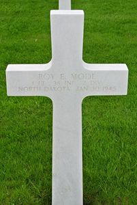 Roy Mode was married to Vernice Luella Pederson on 31 August 1941.He was a teacher before he enlisted at Fort Snelling on 16 July 1942. He was sent overseas in August 1944.