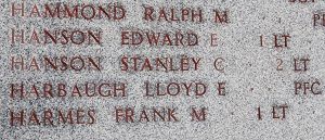 Pfc Lloyd E. Harbaugh was employed by the Blue Ridge Pipe and Nipple Company before he enlisted on 16 December 1942. He was sent overseas in October 1944.Source of information: Astrid van Erp, Terry Hirsch, www.wwiimemorial.com, www.ancestry.com, http://99div.com - Checkerboard Newsletter, MIA List, February 2009, WWII Draft Card