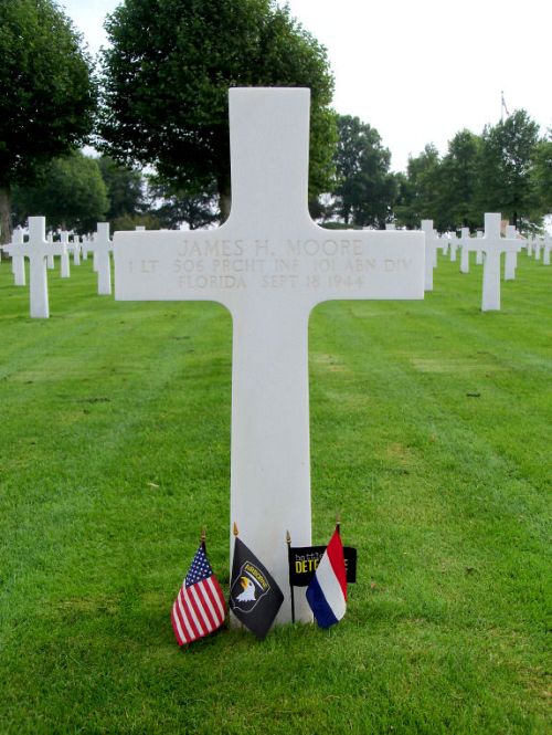 1st Lt James H. Moore had been overseas for only six weeks.He was initially buried at the Temporary American Military Cemetery of Son, The Netherlands.