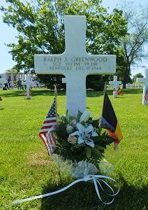 Sgt Ralph J. Greenwood was one of five brothers in the Army. The other four came home, but two of them were wounded in action. His family learned from an article in the August 1991 issue of the "Checkerboard" that he was buried in the American Cemetery at Henri-Chapelle. No one had told them.Source of information: Astrid van Erp, Henri Hannon, www.wwiimemorial.com, www.fold3.com, www.ancestry.com - U.S., Headstone Inscription and Interment Records for U.S. Military Cemeteries on Foreign Soil / 1930/1940 Census