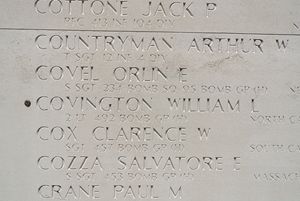 2nd Lt William L. Covington graduated from Rockingham High School in 1940.The aircraft was attacked by approximately 50 enemy aircraft, ME-109's and FW-190's, in the vicinity of Hannover. The plane dropped out of formation and it was seen to go down through the undercast, still under control. In contrast with the testimony that eight parachutes were seen, the entire crew was lost in the crash.