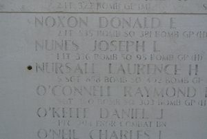 S/Sgt Laurence H. Nursall graduated from James A Garfield High School. He was employed as a fireman for the Los Angeles County Forestry Department.The aircraft was attacked by approximately 50 enemy aircraft, ME-109's and FW-190's, in the vicinity of Hannover. The plane dropped out of formation and it was seen to go down through the undercast, still under control. In contrast with the testimony that eight parachutes were seen, the entire crew was lost in the crash.