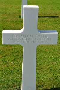 Sgt Edward M. Olsen graduated from Brooklyn Technical High School and was employed by the Neptune Shipping, Inc.He enlisted at Fort Dix, New Jersey on 20 February 1942 and was sent overseas in June 1944.