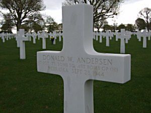 T/Sgt Donald W. Andersen graduated from Valley High School.The plane was hit by fighters just moments after turning on the IP. He salvoed his bombs and with a fire near #3 engine, the plane went into a dive. No parachutes were seen. The attack lasted 13 minutes. There were about 50 ME-109s and FW-190s that hit from below at six and nine o'clock. The damage was done by 30 mm cannon shells and this plane, along with four others in the Squadron, left the formation and crashed in Germany.