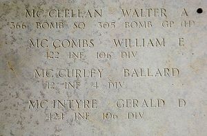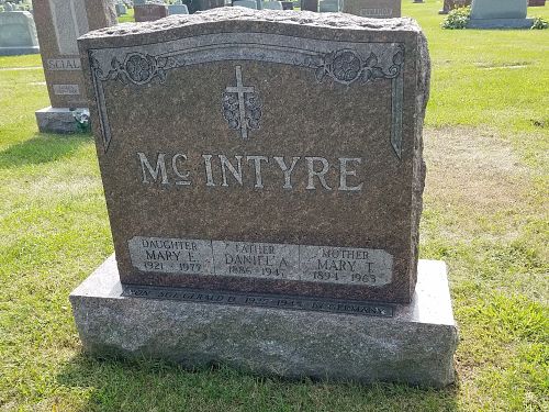 Sgt Gerald D. Mc Intyre graduated from St. Augustine High School in 1943.He is remembered at Saint Mary Catholic Cemetery and Mausoleum in Evergreen Park, Cook County, Illinois.