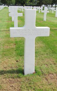 Sgt Melvin D. Williams enlisted at Fort Sam, Houston, Texas.Lucky Lady was shot down by AAA and crashed near Midwoud, Holland. Flak over the target damaged the number 2 engine and fragments from the flak cut the hydraulic lines. Fluid was leaking and the B-17 fell out of the formation, losing altitude. Lt Belton headed for home, but a fire broke out in the cockpit and he ordered the crew to bail out. Before they could do so, there was a large explosion which probably blew off a part of the cockpit. The plane plummeted out of control and crashed in the meadows north of the village of Midwoud, about 45 km north of Amsterdam. Two parachutes were reported seen from observers on the ground. One parachute got tangled on the tail section. Eight crew members were killed and were initially buried at the cemetery of Midwoud on 24 January. They were disinterred and reburied at Margraten on 21 January 1946.
