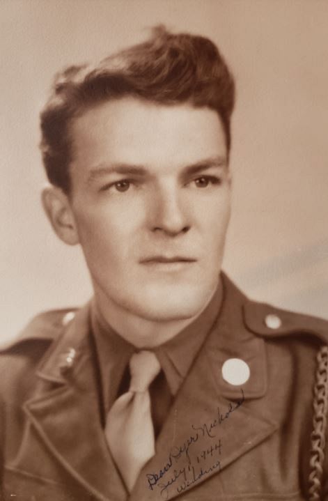 Pfc Dean D. Nichols attended Long Military Academie in New Bloomfield and Maryland University.He enlisted in Baltimore, Maryland on 23 April 1943. He trained at Camp McCall and Camp Forrest and was sent overseas in August 1944.