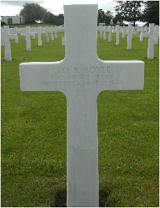 Leo B. Boyle enlisted on 1 February 1944 at Fort Snelling, Minnesota. He was selected for the Army Specialized Training Program (ASTP) and studied at St Norbert College in De Pere, Wisconsin until the program was disbanded.Source of information: Peter Schouteten, www.wwiimemorial.com, www.archives.gov