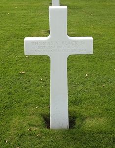Thomas N. Black Jr. graduated from Lehighton High School, class of 1942 and was employed by W.F. Messinger in Nazareth, Pennsylvania.He was first buried at the Temporary American Military Cemetery of Fosse, Belgium.