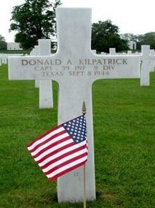 Donald A. Kilpatrick attended law school in Texas before he joined the National Guard. He was selected for Officer Candidate School at Fort Benning, Georgia. After obtaining his commission, he was retained there as an instructor, receiving rapid promotion to the rank of Captain.He was mortally wounded near Dinant, Belgium on 7 September and died in a hospital in France on 8 September.