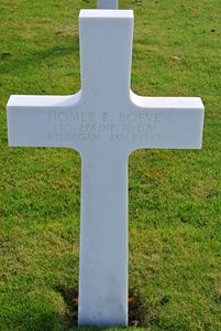Pfc Homer E Boeve was employed at Packard Motor Car Company. He entered the service 8 November 1943. He was sent overseas in early December.George Marschall: As I got back to the rear of the house, one of the guys came out the back door and said that our section runner, Homer Boeve, was killed by one of our own guys as he came to get us with orders to move up on a hill next to the farmhouse where we had assembled. Homer had very poor hearing. We all told him back at Fort Wood that it would get him killed. But he just liked the idea of being a runner. He just did not hear the challenge as he approached our guy in the dark. Bill Rathkamp had carried him into the house, where Homer said that we were needed on top of the adjacent Hill. He died there in the house. When we got to the hill, Harry and Howard Mumm took their gun on top while Flink and I took our gun around the nose of the Hill above the road about halfway up.