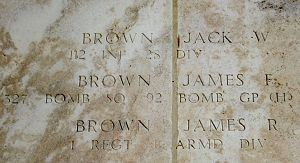 In October 1950 a graves registration detachment of the U.S. Army conducted a six weeks search of the area in the Hürtgen Forest, where it was believed Lt Brown was killed. Information was obtained from burgermeisters, forest guards, demining teams and local inhabitants as to where the heaviest fighting took place and where American and German positions were located. Subsequently, a methodical step by step examination of the terrain was made. Terrain and records were investigated at Gressenich, Grosshau, Kleinhau, Hürtgen, Mausbach, Raffelsbrand, Germeter, Vossenack, Simonskall and Zweifallshammer, however with negative results. It was therefore concluded that further investigation would not result in de recovery of his remains.