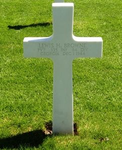 Pvt Lewis H. Browne graduated from Boys' High School in 1937, attended business college and was a clerk.He joined the Regular Army at Fort McPherson, Atlanta, Georgia on 30 October 1940. He was stationed at Fort Benning, Georgia, Camp Gordon, Georgia and in Texas and went overseas in October 1944.