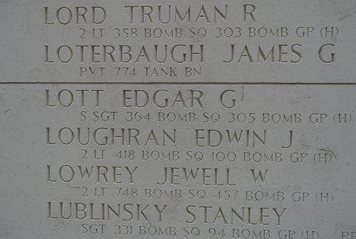 S/Sgt Lott attended high school for four tears and was a clerk, employed by the Russell Company in Jackson.He volunteered for the Army of the United States at Camp Shelby, Mississippi on 29 April 1942 and received his airplane mechanics training at Keesler Field, specialist training at Boeiing Aircraft factories in Seattle, Washington, gunnery schooling at Las Vegas, Nevada and aerial combat training at Boise, Idaho and Casper, Wyoming. He arrived in England in early May 1943.