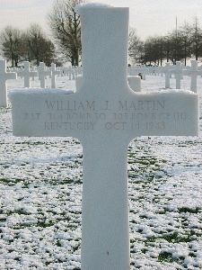 2nd Lt William J. Martin was born in Denver, Colorado and had lived in Paducah since 1939. He was employed at the Columbia theater during vacation periods. He applied for cadet training while a student at Murray State Teachers College and was ordered to report for duty in December, 1942, at Kelley Field, San Antonio, Texas. He graduated June 24, 1943 at the aerial navigation training base in San Marcos, Tex., and received his wings and commission there before he left for England in September.The airplane sustained rocket- or bulletdamage in nr 2 engine caused by Obfw. Anton-Rudolf Piffer in Focke Wulf 190A of 2.JG 1. There were three German fighter planes involved of which one was certainly shot down by the gunners of this crew: the Me-109 of Feldwebel Brinkmann that crashed in a field in Chevremont killing him.